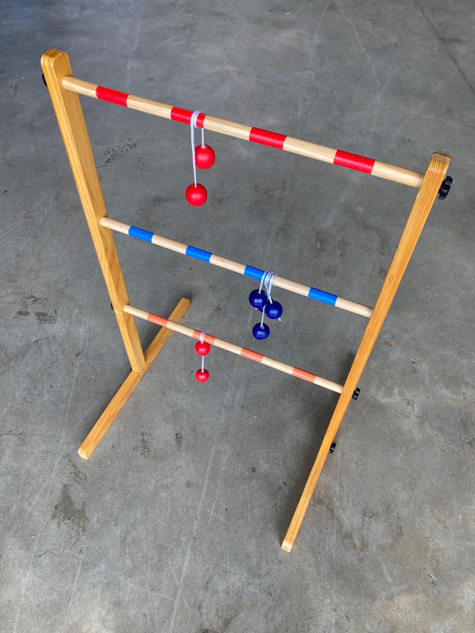 Noch nie gehört? Beim Leitergolf wirft man verbundene Kugeln auf die Sprossen der „Leiter“. Je höher die Stufe, desto mehr Punkte gibt es. Perfekt für kleine Wettbewerbe und jede Menge Spaß!